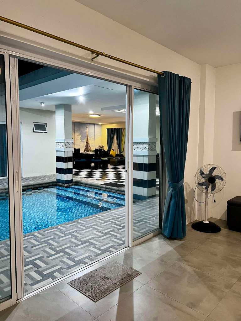 This family room (Chambre de maître) can sleep 12 persons using two Queen sized double deck with pull-out made of solid Mahogany. This room is equipped with a 1.5 HP Carrier Crystal 2 to ensure a cool and purified air that creates an opportunity for guests to sleep soundly through the night. The room also has its own toilet and bath. Beautiful blackout curtains are installed to ensure privacy and likewise block off the light and sounds from the outside area. This room also has a 43-inch HDTV with Netflix and YouTube.